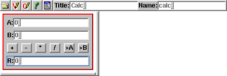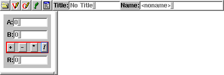 But stop! Maybe it's useful to take the result and copy it to one of the input buttons for reuse. Thus two additional buttons are required, and to make it nice, all buttons should have the same size (with ``tabbing'' box style). The window must have a title, and a name, too.